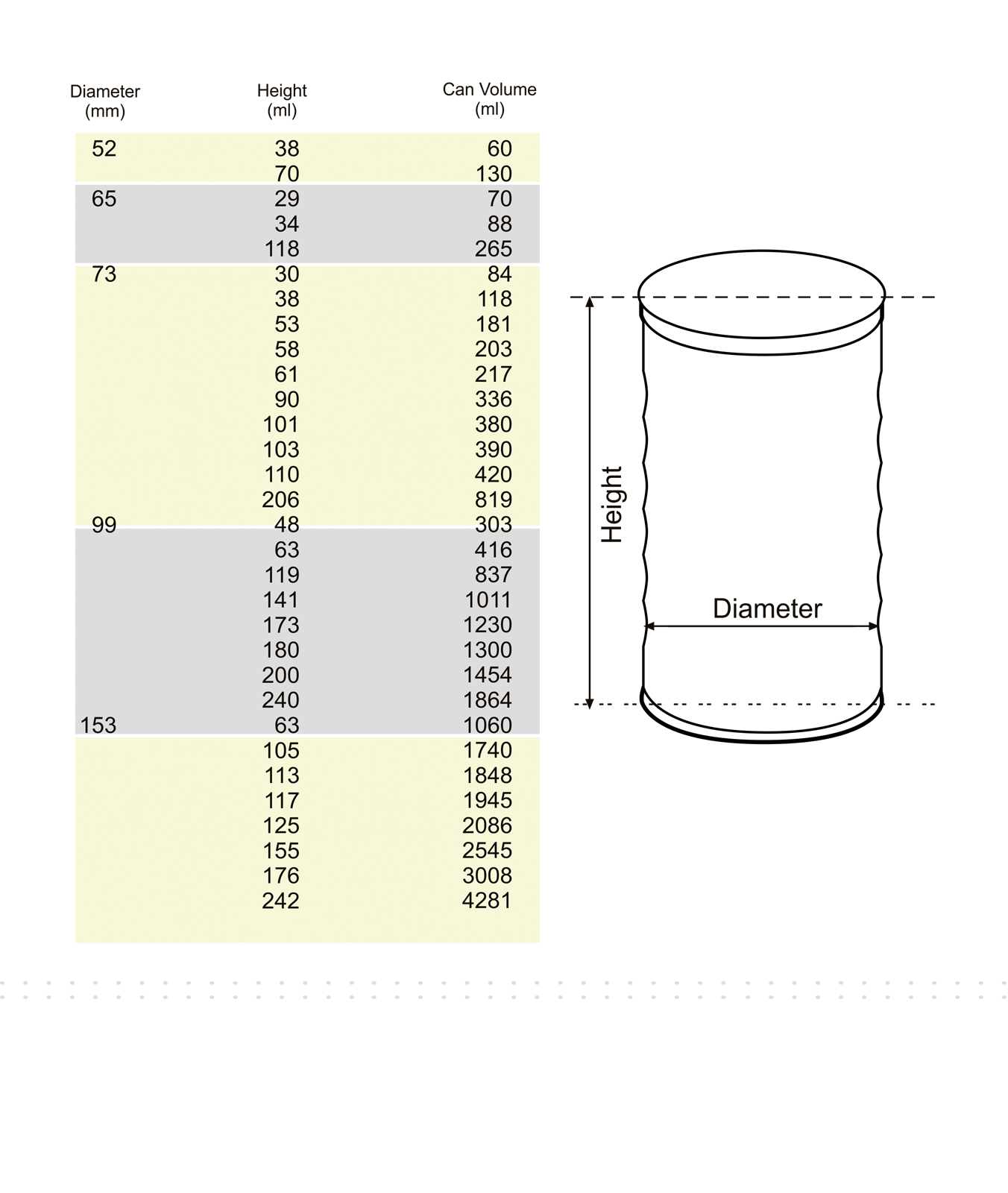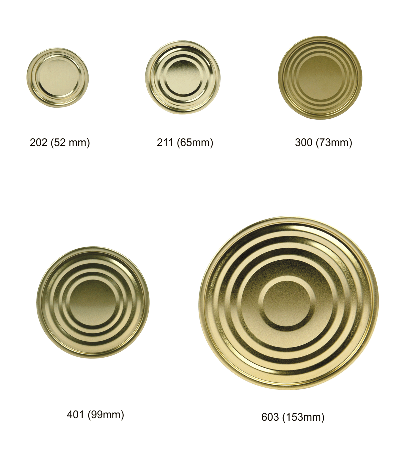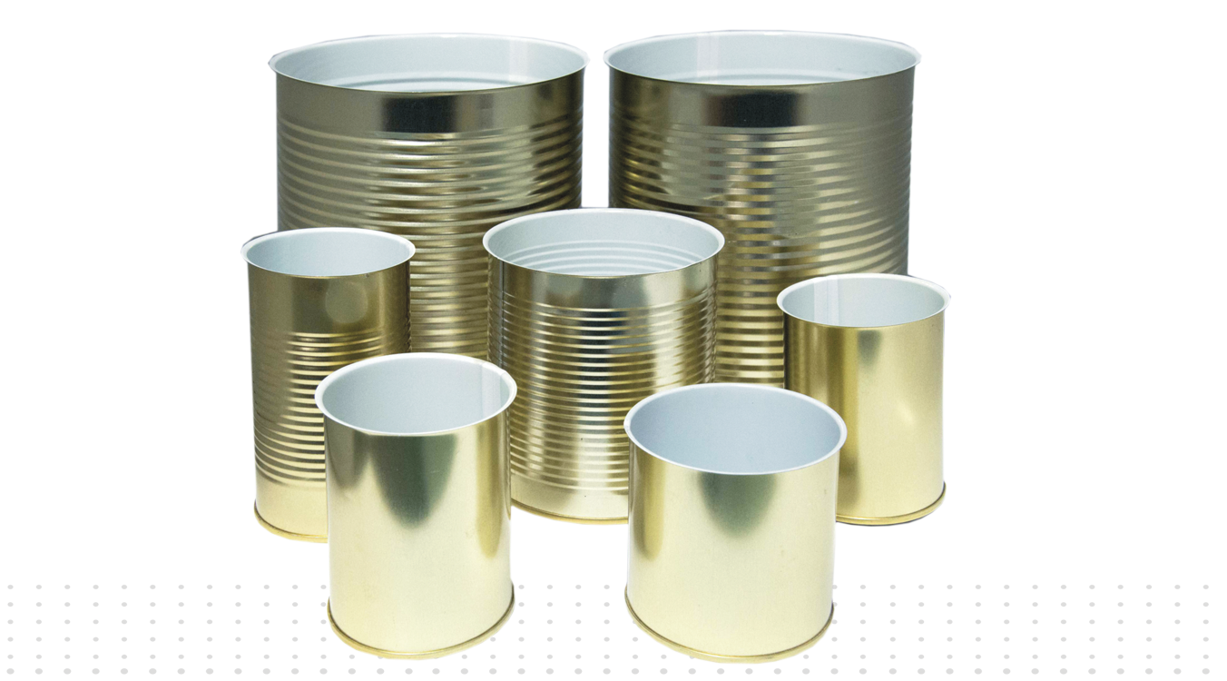 Food Cans diameters 52, 65. 73, 99, & 153mm of different heights. These food cans maybe , printed , lacquered or beaded according to the customer's need and products requirements.